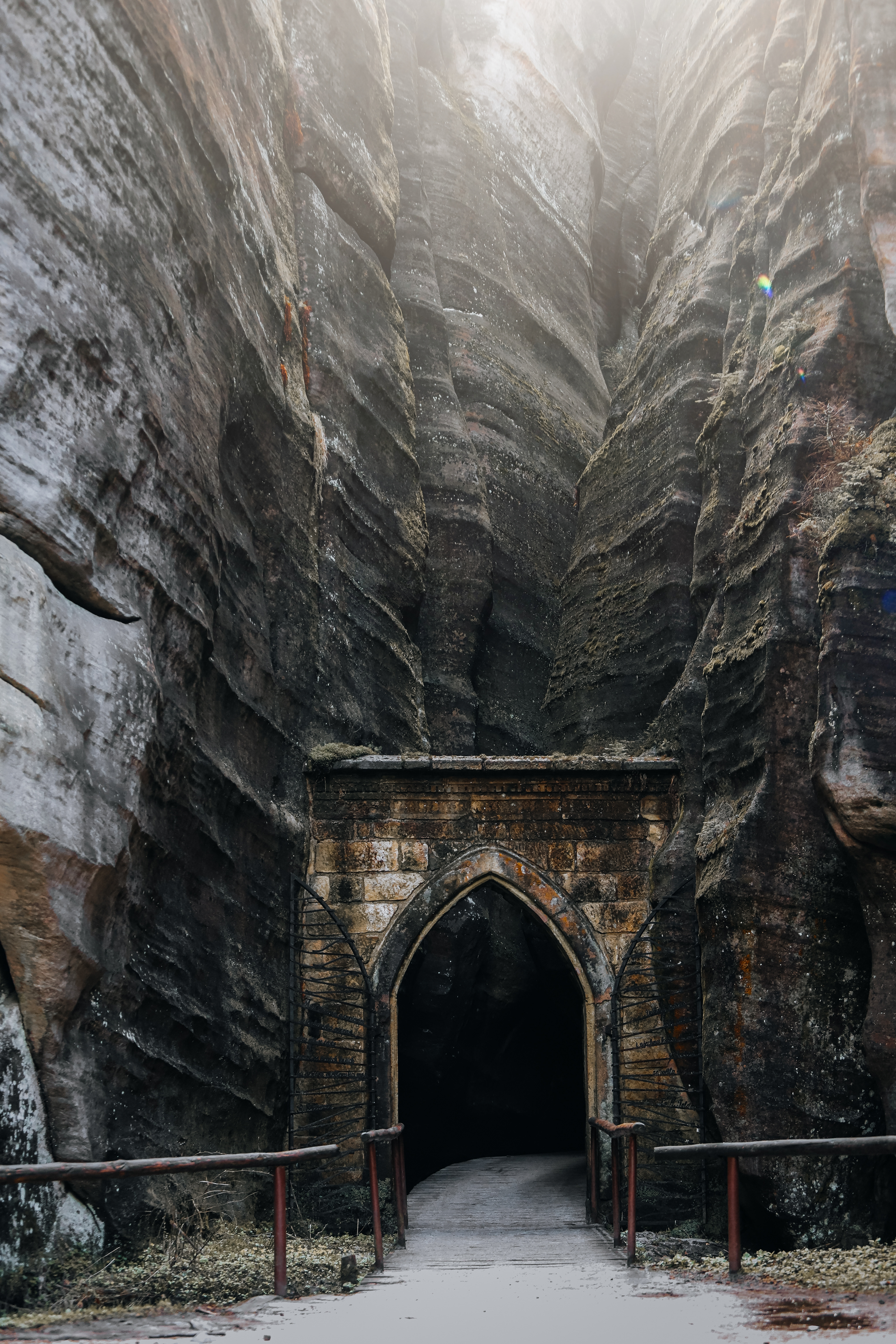 Idąc dalej wyznaczoną trasą dojdziemy do Gotyckiej Bramy, która kiedyś pełniła funkcję głównego wejścia na teren Skalnego Miasta. Teraz jest popularnym miejscem do robienia zdjęć, do którego ustawiają się kolejki turystów - my na szczęście trafiliśmy na chwilę luzu.