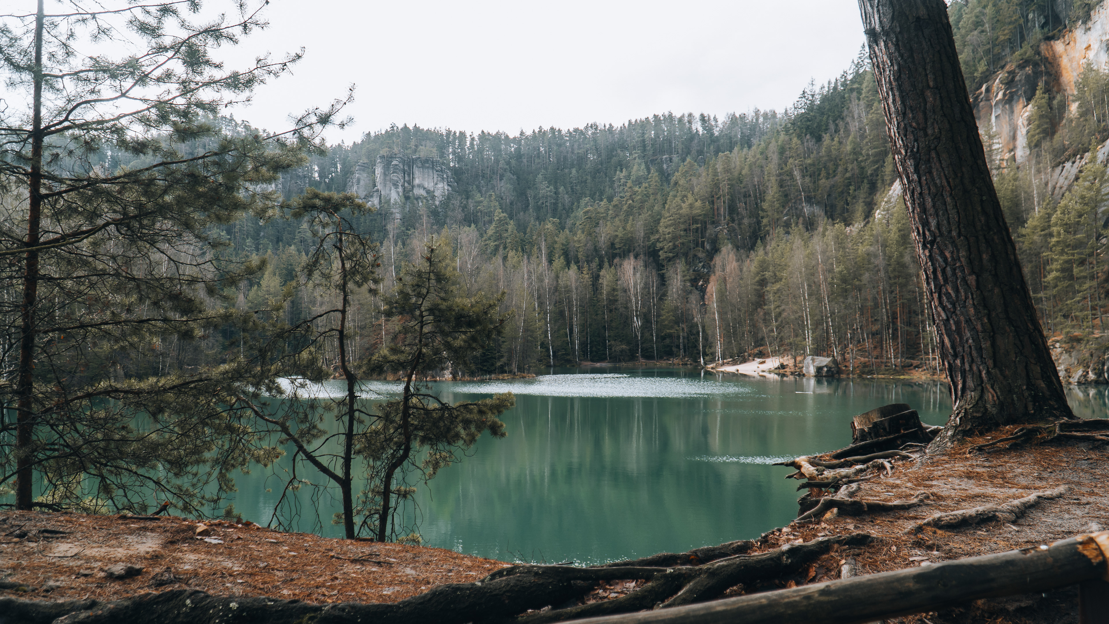Zaraz po wejściu do rezerwatu trafiamy na turkusowe jezioro, które powstało na terenie dawnej kopalni piasku. W tym miejscu możemy wejść na trasę, która je okrąża lub kontynuować spacer pośród formacji skalnych - my wybraliśmy drugą opcję.