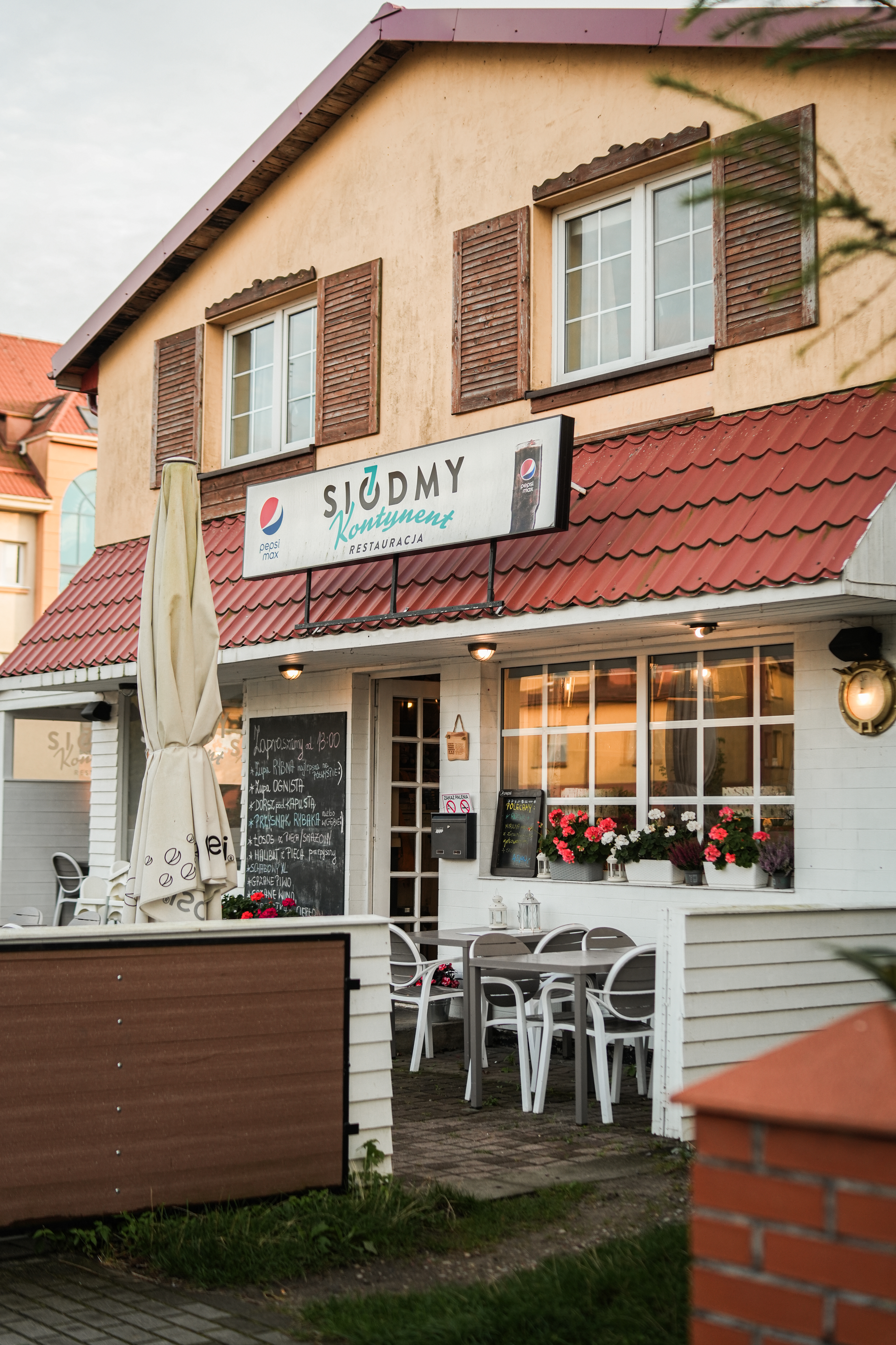 Kolejne psiolubne miejsce, które odwiedziliśmy to Siódmy Kontynent. Zamówiliśmy zupy i o ile pomidorowa była naprawdę smaczna, to rybną na Półwyspie Helskim jedliśmy już lepszą. Na duży plus zasługuje szarlotka z lodami - była pyszna :)